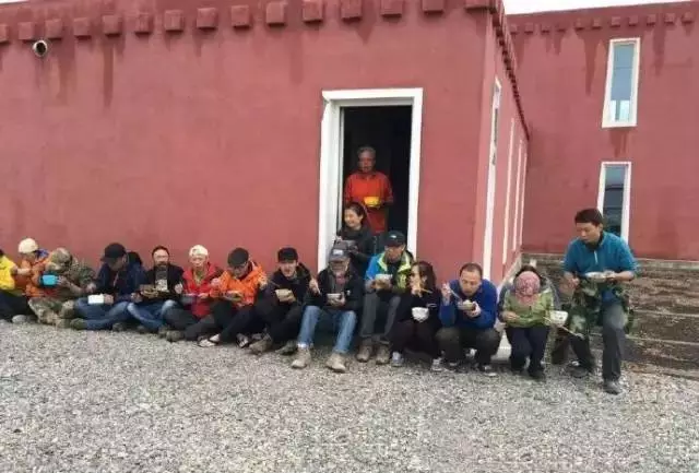 志愿者们在外面席地而坐,胡歌也不例外。哎,说什么好呢,这逼格简直UP到了极致。