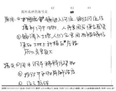 像下面这样,考生涂的是43题题号,答的却是42题的内容,只能得零分。